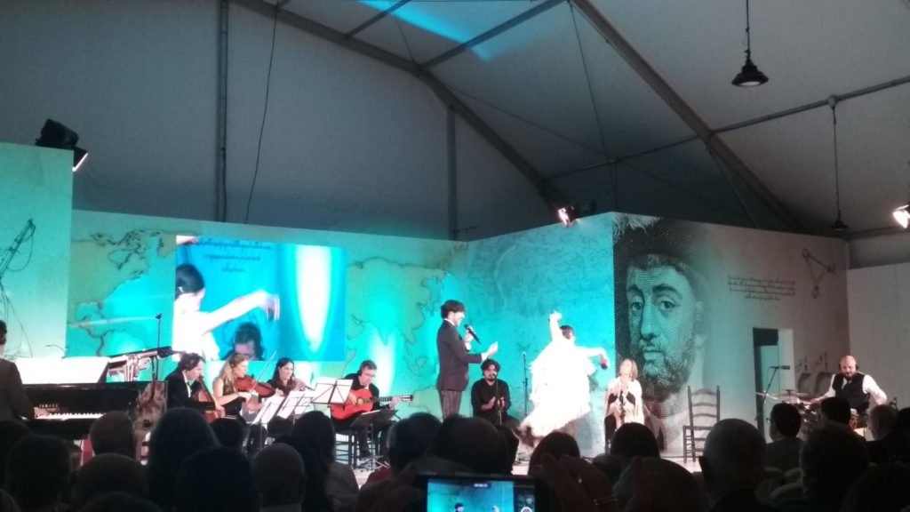Tras la presentación del videoclip y las intervenciones institucionales, el artista Manuel Pombo actuó ante las más de 300 personas que acudimos a la gala y que seguidamente pudimos disfrutar de una degustación gastronómica de la marca «Sabores de la Provincia de Sevilla» elaborada por el chef sevillano Enrique Sánchez.